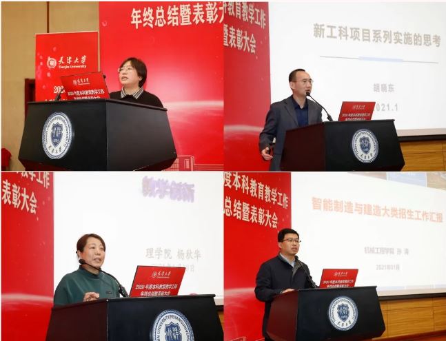 化工学院夏淑倩、精仪学院胡晓东、理学院杨秋华和机械学院孙涛四位教师分别从一流课程建设、新工科项目建设、一线教书育人经验和招生工作进行了专题分享与交流。 2021年是建党100周年,是“十四五”开局之年,也是学校“新三步走”战略第二步新征程的开启之年。全校本科教学工作同仁在新的一年必将会继续不忘初心,牢记使命,勠力同心、砥砺奋进,为培养德智体美劳全面发展的社会主义建设者和接班人做出新的更大贡献。