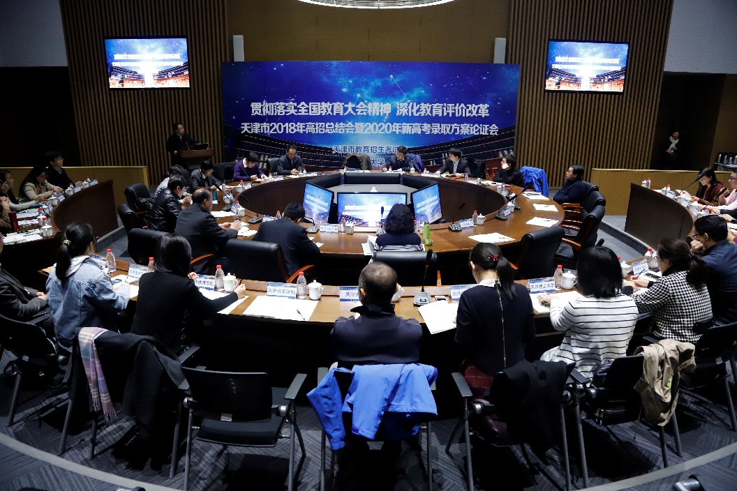 参会高校围绕2020年天津市高考志愿填报及投档录取方案展开论证研讨。各学校代表积极发言,对新高考改革后的投档模式、综合评价录取实施、新高考改革后的批次安排和志愿设置、高中学生综合素质评价在高招录取中的具体运用以及成立天津高校宣传联盟等议题积极讨论,提出很多建设性意见。各高校均表示一定齐心合力,总结好2018年招生工作,按照天津市教育招生考试院的统一部署,一起推动天津市高考综合改革高效平稳进行,打造招生宣传天津品牌,造福更多天津考生。