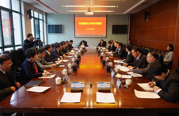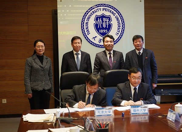 在天津大学党委书记李家俊,党委副书记赵美蓉,福州大学党委书记陈永正,福州大学校长、工程院院士付贤智的见证下,天津大学副校长张凤宝与福州大学副校长黄志刚签署了《关于建立全面合作关系的协议》。校长助理肖松山主持签约仪式。