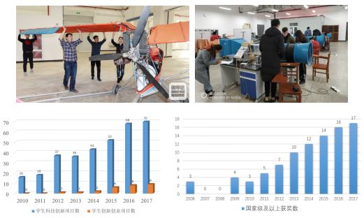 学院拥有1个国家重点实验室、6个省部级重点实验室和2个国家级“111”引智基地,利用这些优势科研资源,打造学生书院、机械创新俱乐部、飞龙创客空间、能源动力众创平台等双创平台,形成了学生创新创业发展的重要活动平台。从2012年到2017年,天津大学机械工程学院学生创新项目由每年37项提升到70项,获国家级奖励由每年7项提升到17项,获奖质量明显提升;学生自主创建科技型创业团队发展到14个、创客空间2个,注册科技型公司12家。近五年学生完成科技创新作品260余份,专利50余项,论文近20篇。