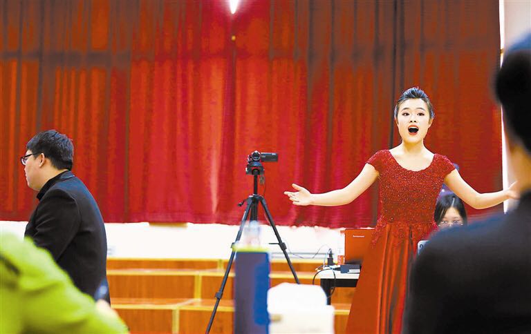本站讯(通讯员 方明 苏畅 摄影 张立 刘东岳)2月24日,天津大学2019年高水平艺术团测试正式开始。全国各地通过初审的考生云集天津大学卫津路校区,参加文化课和艺术专项测试。据介绍,今年天津大学高水平艺术团招生项目为声乐类美声唱法,为天津大学北洋合唱团选拔在声乐方面具有艺术特长的考生,计划招生11人,总报名人数近300人。测试包含文化课测试和艺术测试。文化课测试学生语文、数学、英语三门基础课程的掌握情况,艺术测试内容为自选曲目、视唱和听音模唱三部分,考察考生的基本功、视唱、艺术表现力等。