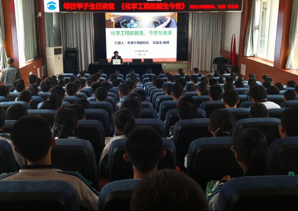 9月16日下午,巩金龙赴兰化一中,为200余名中学生做“化学工程的前世今生与未来”主题报告。作为兰化一中校友,巩金龙从同学们身边的化工讲起,结合最新的科研成果,从化学工艺阶段、单元操作阶段、传递过程阶段等向高中师生系统详细地分享了化工学科的发展历程。同时结合如今化工与人工智能、基因合成技术、数学、物理学等诸多领域技术、学科的深度交叉融合,指出了未来化工学科的发展方向。他强调,化工行业是一个高度体现国家科技研发能力、具有极高产品附加值的行业。天津大学作为中国第一所现代大学,百廿余年中,在化工学科建设、人才培养、科学研究、国际化等方面取得了突出成绩,为中华民族的工业化和社会进步做出了突出贡献。巩金龙勉励同学们树立“天大”志向,发奋学习,将来能够取得“天大”成就,为国家的发展贡献自己的力量。