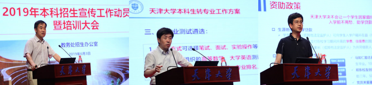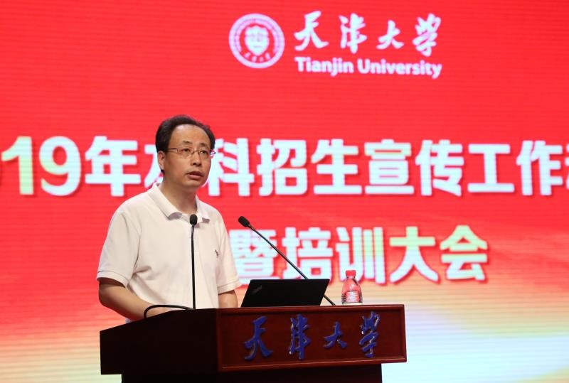 本站讯(通讯员 贾晗 摄影 唐蒙)2019高考在即,为进一步加强本科招生宣传工作效果、提高生源质量,天津大学6月3日召开2019年招生宣传工作动员会暨培训大会。校党委书记李家俊出席并讲话。各学院招生负责人、各招生组组长、全体招生宣传教师参加了会议。大会由副校长王树新主持。