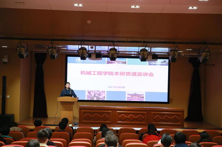 为切实加强本科生与研究生阶段人才培养的连续性、系统性和兼容性,落实《天津大学本研贯通人才培养实施办法》,提升本科生培养质量,2021年3月5日,机械工程学院在北洋园校区37楼北区一层宏远报告厅召开本研贯通师生交流会。机械工程学院院长王天友、本科教学副院长孙涛、研究生教学副院长刘正先、党委副书记刘岳、院长助理邓帅、研究生及本科责任教授、研究生及本科教务员以及2018级优异生参加了本次会议。会议由孙涛主持。