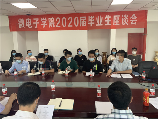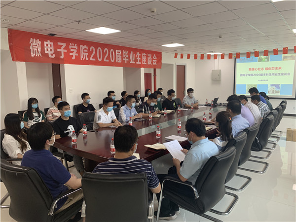本站讯(通讯员 尹明、魏怡鑫)6月30日下午,微电子学院在20楼228召开主题为“集雄心壮志,展创芯未来”的2020届本科毕业生代表座谈会,微电子学院院长马凯学、副院长刘强、党委副书记韩旭,教师代表刘开华、沈建国、刘昱、谢生、梁继然、史再锋、宋航、程思璐、孙睿以及2020届15位毕业生代表共同参与本次会议,座谈会由2016级本科生辅导员尹明主持。