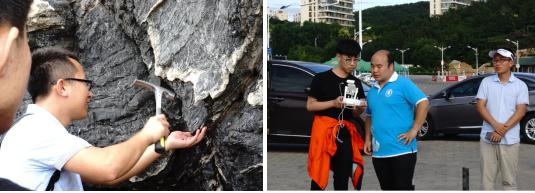 在大连滨海国家地质公园,学生们亲身感受、观察认识了海蚀崖、海蚀柱、海蚀拱桥等典型海蚀地貌,学习分析海岸地质构造变化。在大连山体公园练习航空测量,学生们在专业老师的指导下亲自操控了无人机,感受到测量的严谨与精确。在交通运输部北海航海保障中心大连航标处棉花岛航标养护中心,实习小组学习使用RTK测量仪器,尝试绘制草图,完成海岸地形测量,水准测量和潮汐观测等实习内容。