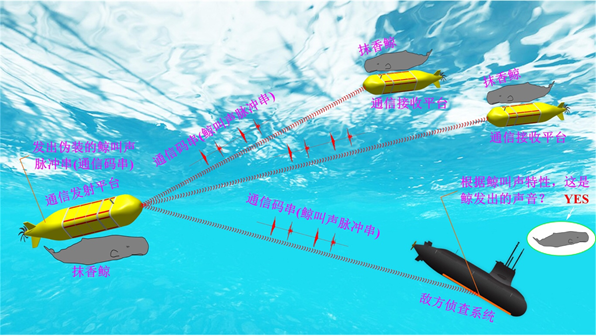 为破解这一难题,科研团队首次提出利用抹香鲸原始叫声作为通信信息载波,同时模拟抹香鲸原始叫声串构造仿生通信信号串,以仿生伪装策略实现水下通信信息隐蔽传输。