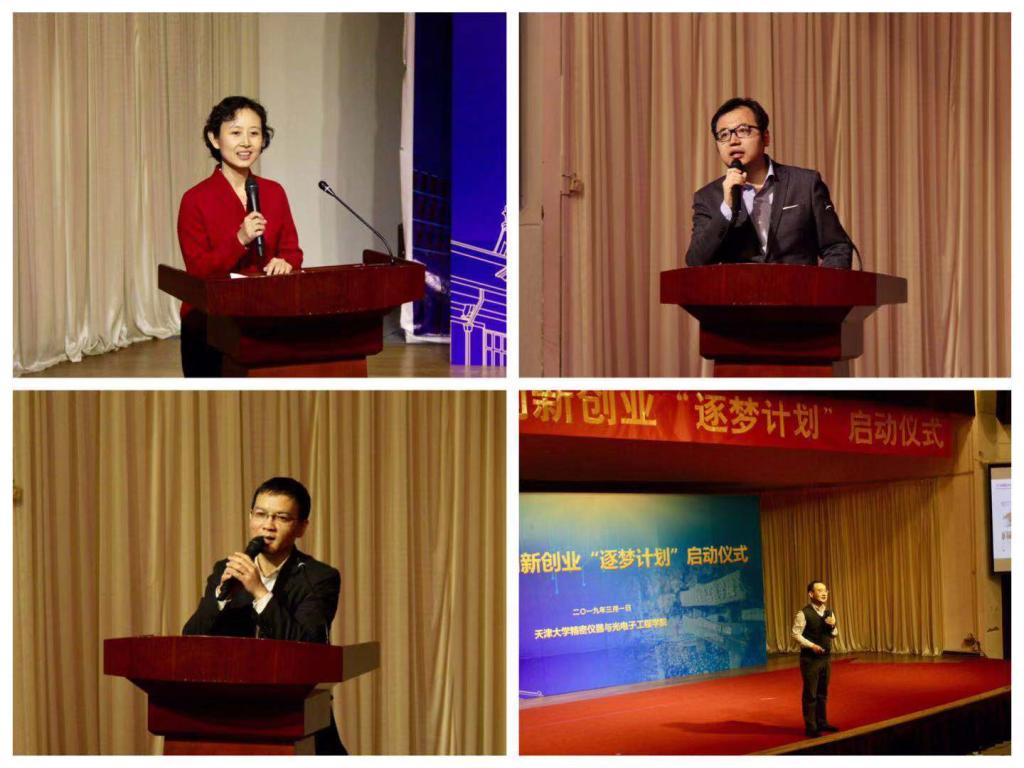 本站讯(通讯员 赵若昕)3月1日下午,精仪学院创新创业“逐梦计划”启动仪式在卫津路校区大学生活动中心一层报告厅举行。天津大学教务处副处长贾果欣、团委副书记王鑫,精仪学院党委书记王海龙、副院长胡晓东,创新创业梦想教师指导团、学生指导团成员出席仪式,学院2018级全体本科生参加仪式,仪式由学院创新创业指导教师单亦鹏主持。仪式上,单亦鹏对“逐梦计划”进行了介绍。为增强学生的基础学习力、专业竞争力和综合实践力,培养多元化、创新型的卓越工程人才,学院针对本科生开展“逐梦计划”。“逐梦计划”采用理论学习与实践锻炼相结合、集中辅导与分散自学相结合的形式,分为启航、卓荦两个部分,旨在提升学生的实践实验能力和竞赛创新能力。
