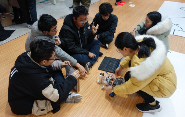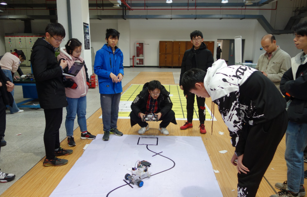 项目答辩中,每组同学分别从设计小车的历程、小车的具体结构和功能、遇到的一些问题及其解决、个人的主要贡献进行了叙述。虽然每个小组要实现的功能都是一样的,但无论代码的编写还是过程的设计,都可以看到不同组的巧思与用心。就投放的设计来说,一班二组采用了连杆结构,利用推杆将物品进行投放。一班三组采用了圆盘结构,利用圆盘的转动实现投放。而根据不同小车的构造与性能,各个小组进行了参数的调配以改善他们小车平衡性与稳定性。