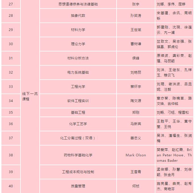 近日,教育部印发《关于公布首批国家级一流本科课程认定结果的通知》(教高函〔2020〕8号)正式公布首批国家级一流本科课程认定结果。天津大学共有45门课程获得认定,其中,新认定课程37门,原2017年、2018年国家精品在线开放课程和国家虚拟仿真实验教学项目8门。从类型看,五类一流课程均有入选,从数量看,新认定课程数居全国高校第八、天津市高校第一。